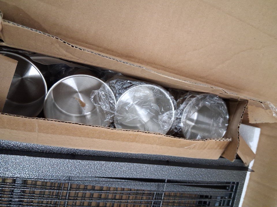 one of the trays is slightly bent on both sides shown in pictures possibly due to shipping also the item has some minor marks/scratches please refer to pictures