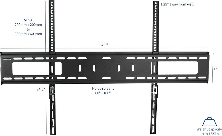 vivo Extra Large Heavy Duty TV Wall Mount Bracket with Max 900x600mm VESA , Fits Screens 43" - 100" - Black (Model: MOUNT-VW100F)