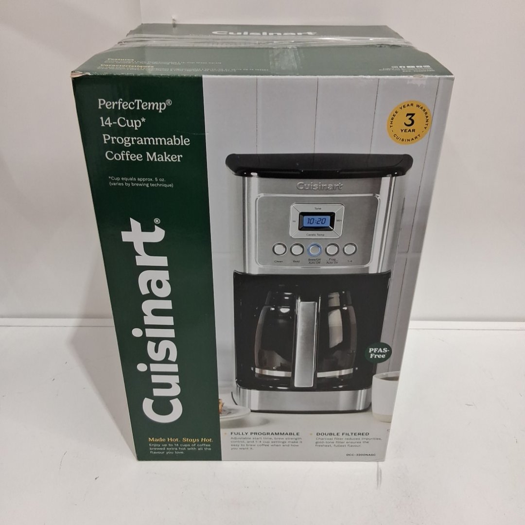 CUISINART PERFECTEMP PROGRAMMABLE COFFEE MAKER WITH DIGITAL DISPLAY - 14 CUP GLASS CARAFE - STAINLESS STEEL (MODEL: DCC-3200C)