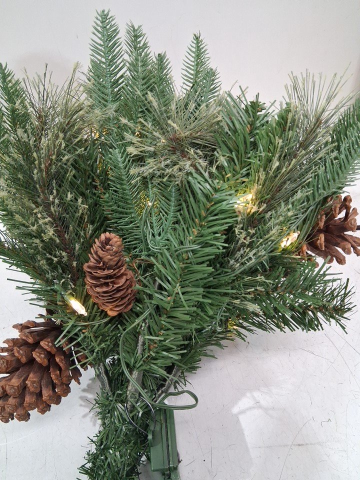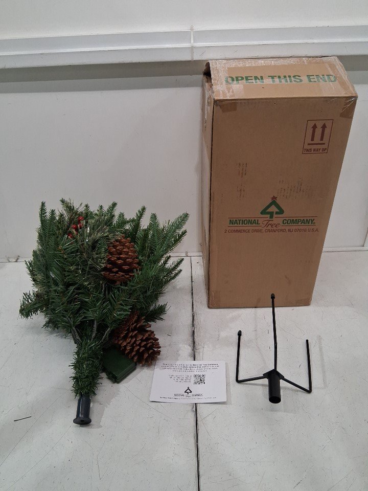 national tree company decorative Pre-Lit Colonial Fir Artificial Christmas Urn Filler with stand and 35 led lights - 18" - multi-colour