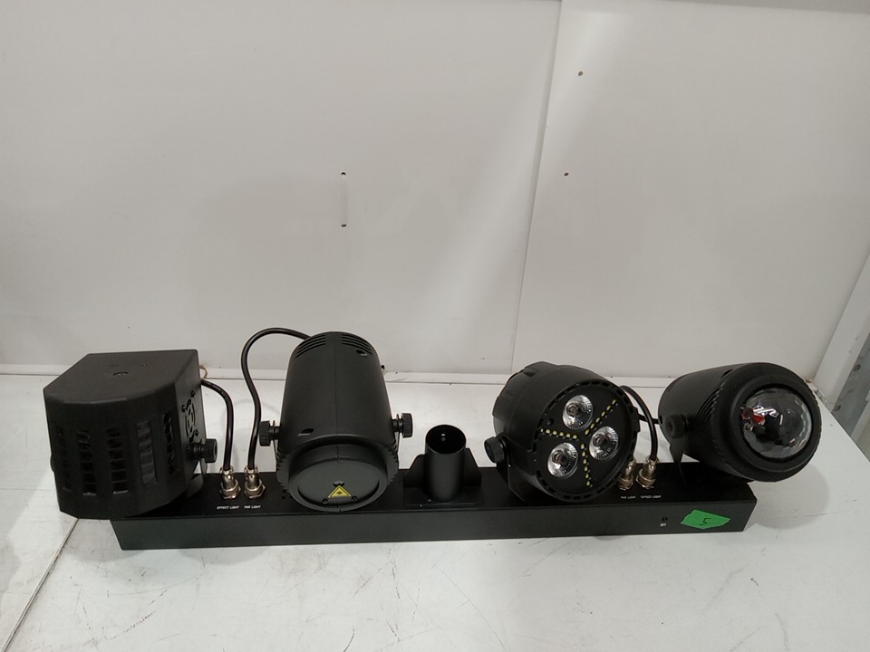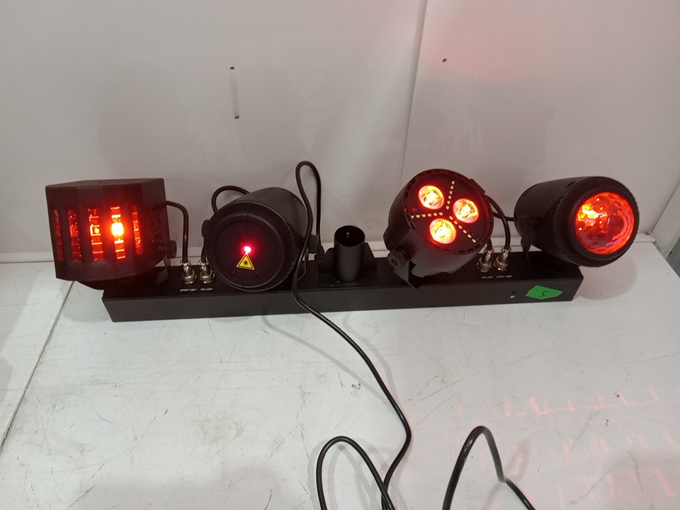 There are scratch marks on the stand and there are minor scratch marks on the sides of the mounting lights due to previous use. Tested for power and light only. (Please see photos)