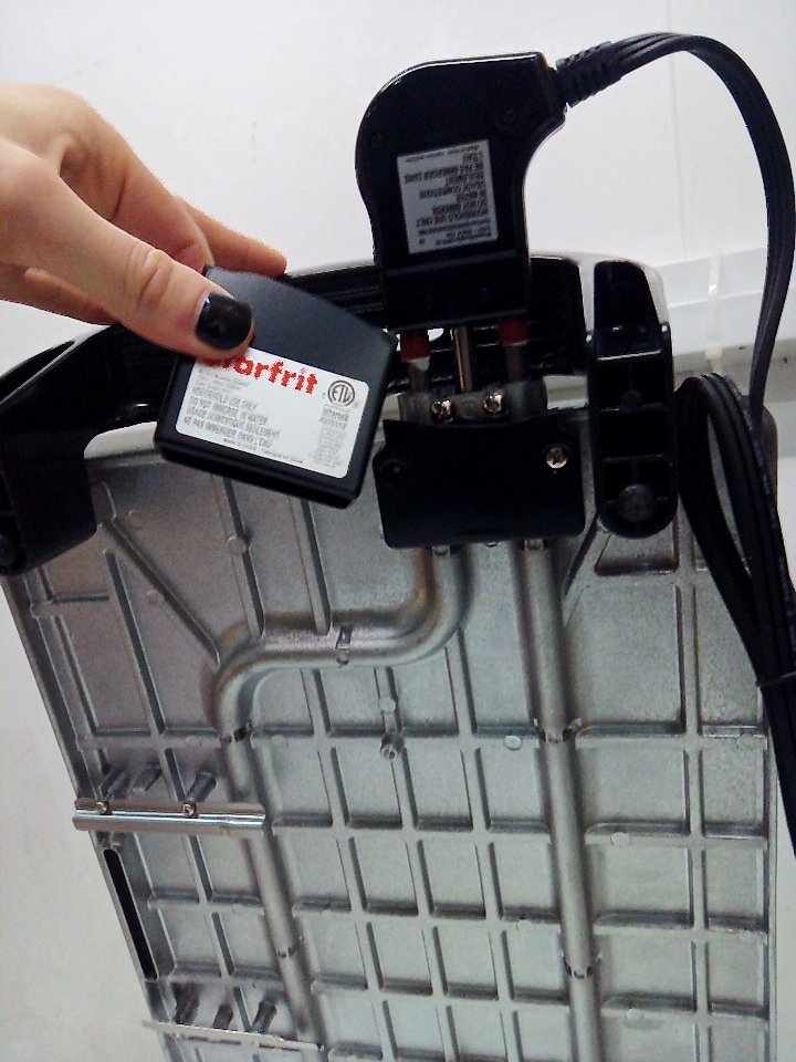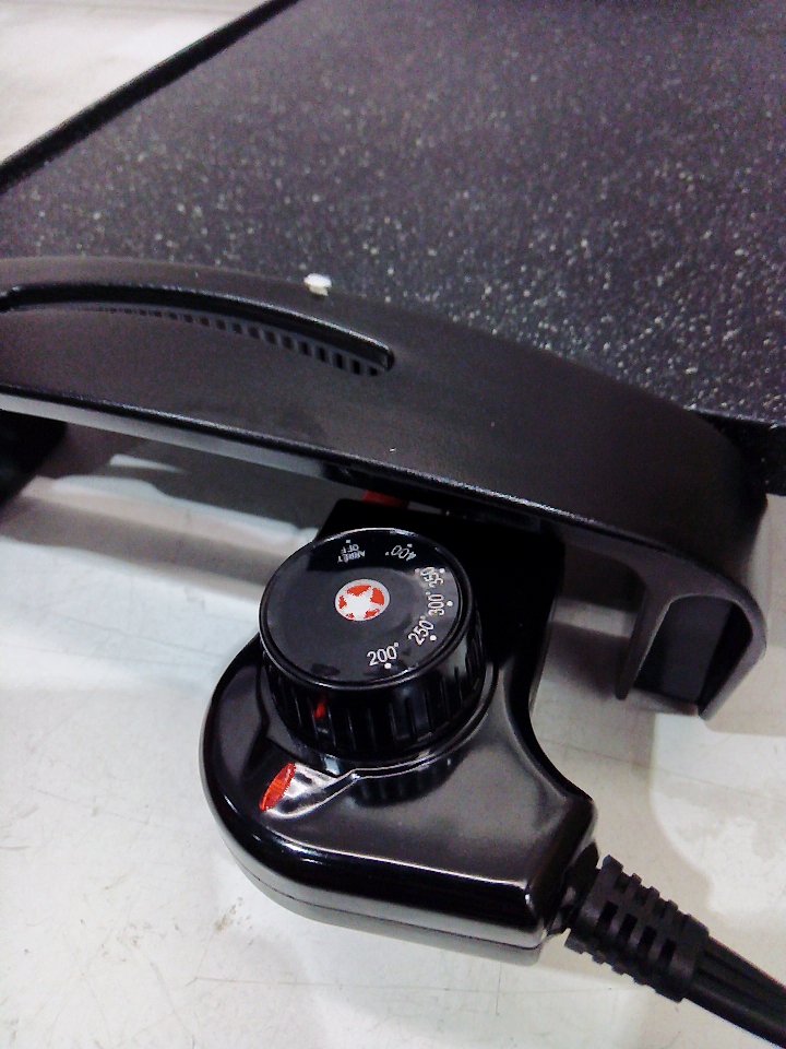 The plastic guard around where the plug inserts into the griddle has cracked off. Tested for power. (SEE PHOTOS)