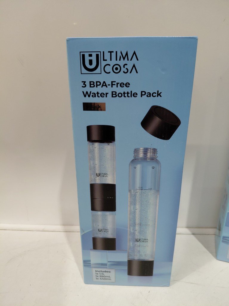 3PK Ultima Cosa WATER BOTTLE PACK - 1.1L/ 550ML/440ML - BLACK/CLEAR