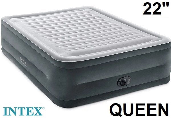 Intex DuraBeam Deluxe Comfort Plush Air Mattress with Built in Electric Pump - QUEEN - 80" x 60" x 22" - grey/dark blue (model: 64417ed)