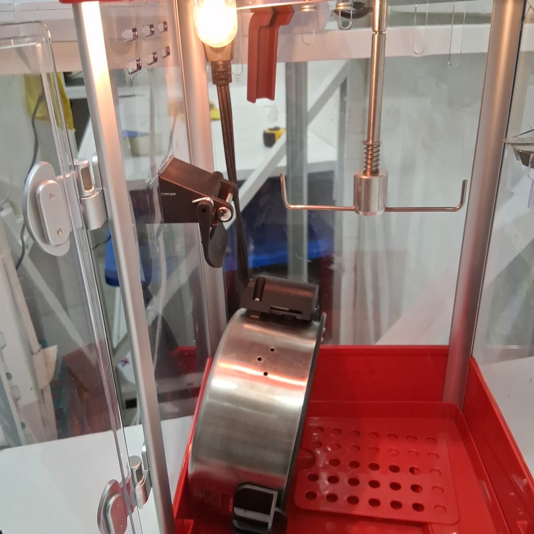 There are some scuff marks on the back indicating possible previous use. Tested for power and heat of the kernel holder.