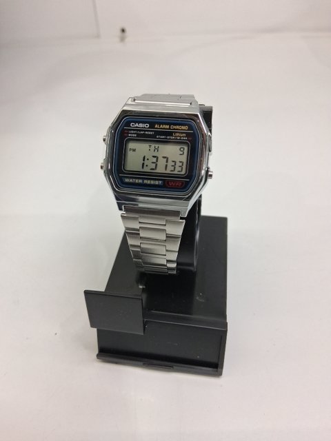 MEN'S CASIO CLASSIC DIGITAL QUARTZ MOVEMENT STAINLESS STEEL BRACELET WATCH - 33MM - SILVER (MODEL: A158WA-1CR)