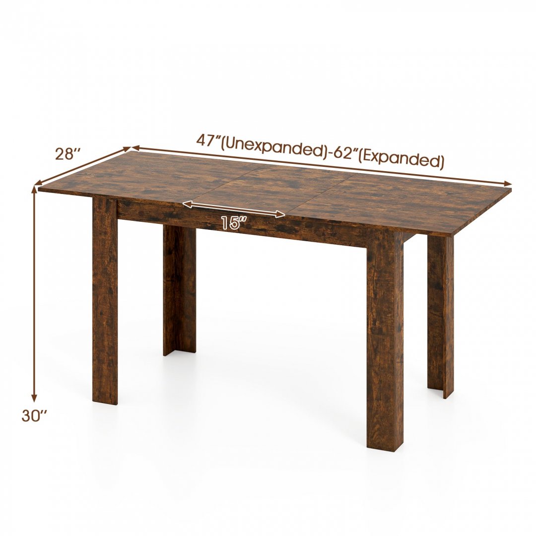 Costway extendable dining table for 4-8 people - 30" x 28" x 47-62" - rustic brown - (model: kc57828cf)