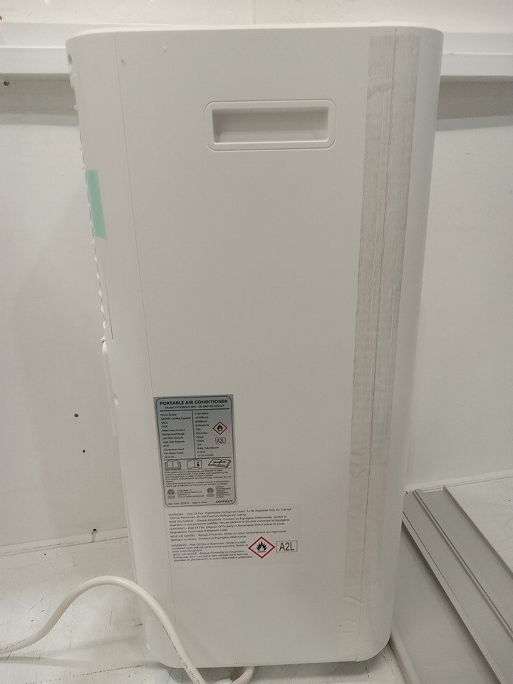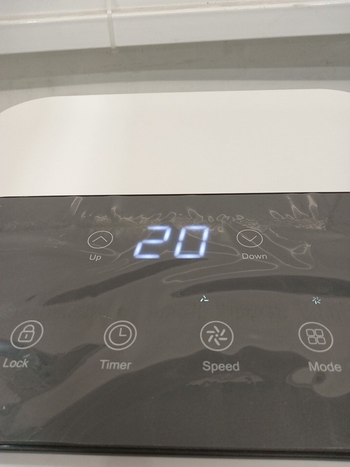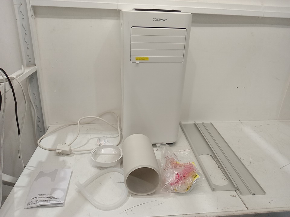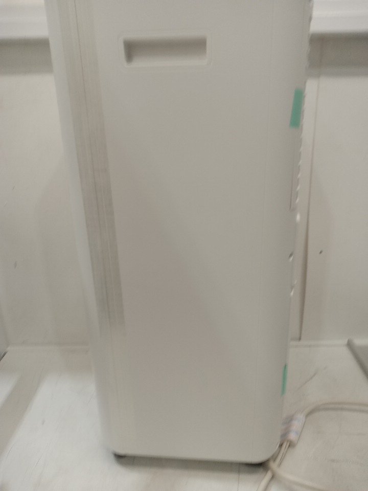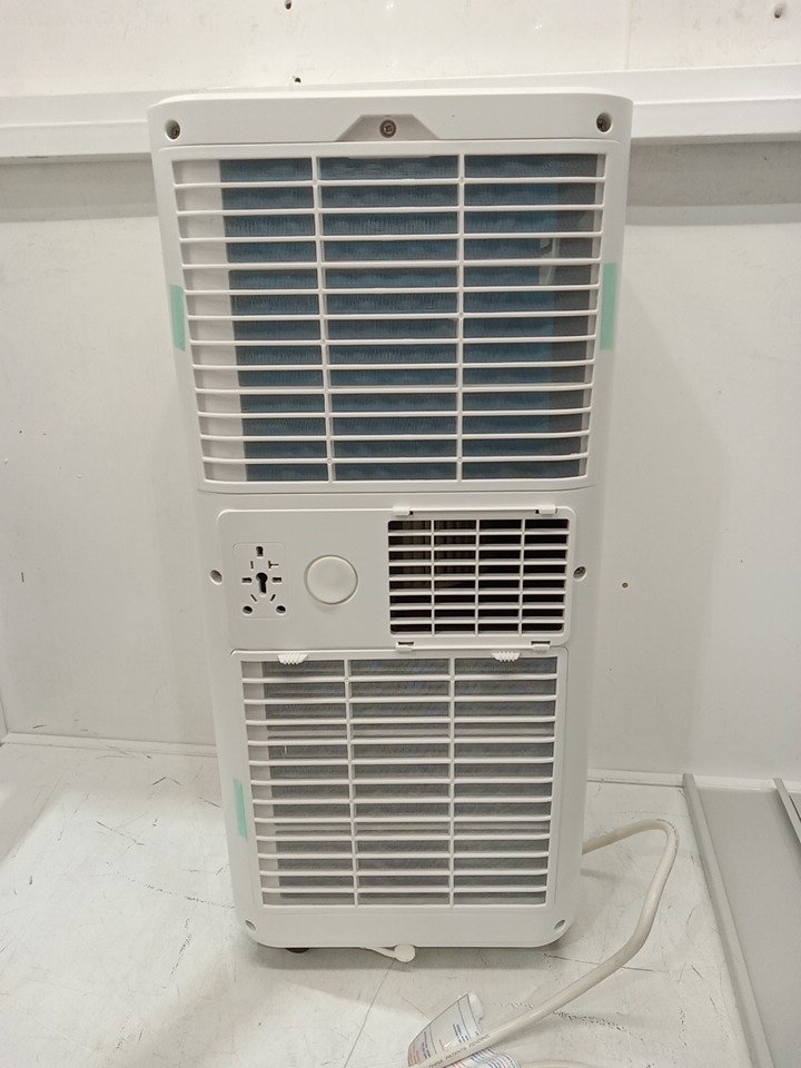 one of the wheels is broken, as well as one of the panels, and there is a black mark on the front of the ac. other then that it turns on, and works fine. please see photos
