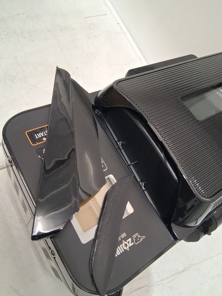 Crack on lid, pieces in packaging could be repaired. Item was tested for power