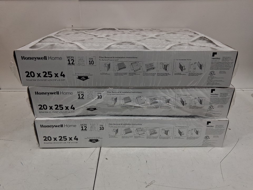 3PK HONEYWELL HOME MICRO DEFENSE AIR FILTERS, MERV 12- 20" x 25" x 4" (MODEL: CF200A1016-3PKAM)