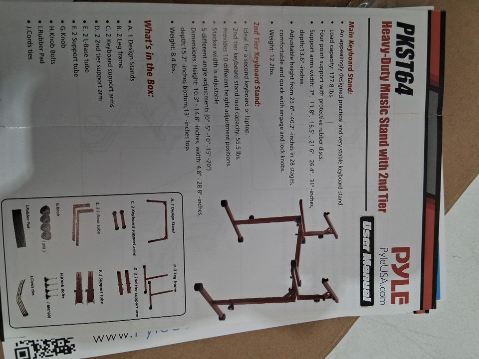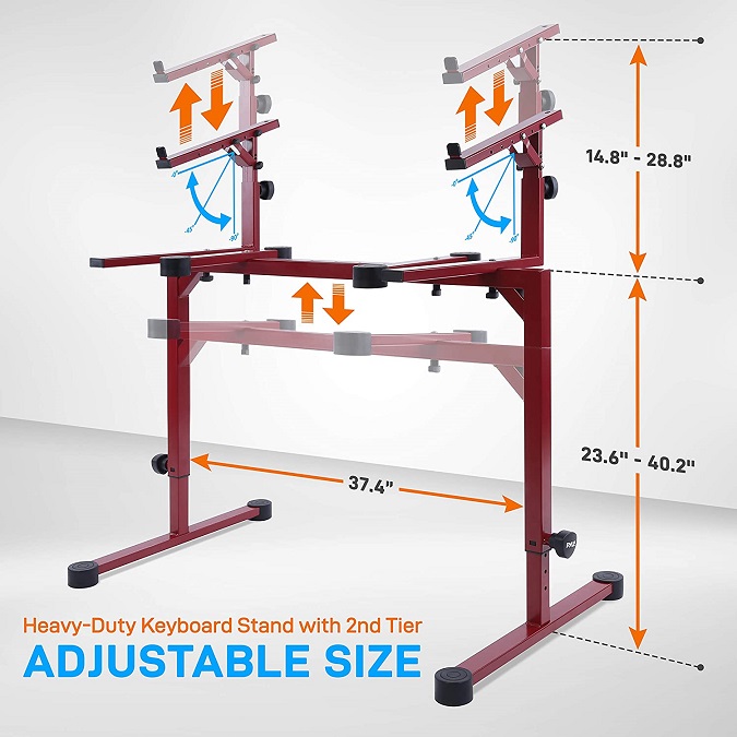 Pyle Heavy-Duty Keyboard Height Adjustable Music Stand with 2nd Tier - 37.4" x 40.2" - RED/BLACK (MODEL: PKST64)