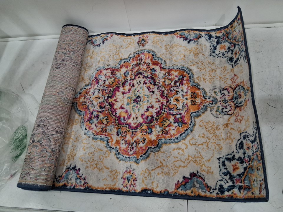 SunShine Rugs Splash Collection Medallion Print Area Rug - 2FT 3" x 6ft - CREAM (Design: 2899)
