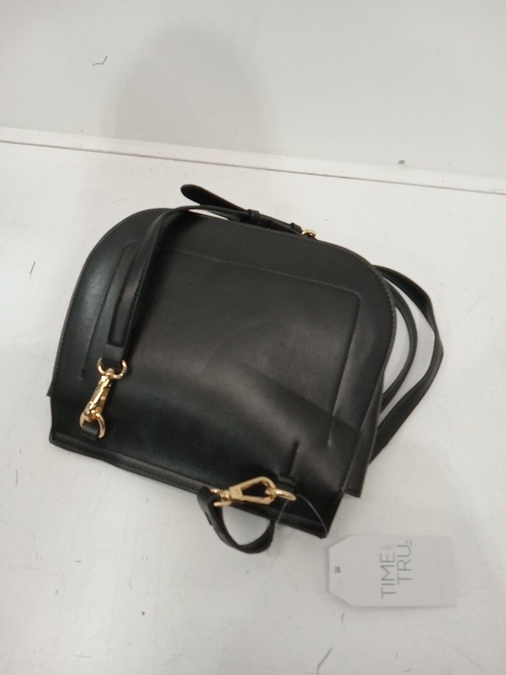 Women's Time and Tru Faux Leather Crossbody Bag - 9" x 7" - Black