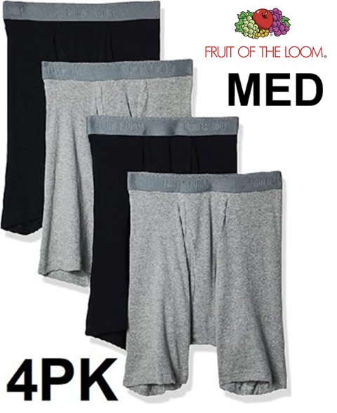 4PK MENS FRUIT OF THE LOOM coolzone fly ventilated mesh BOXER BREIFS - medium - GREY/BLACK
