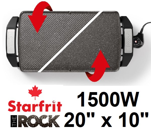 Starfrit The Rock Electric Reversible Grill/Griddle - 20" x 10" - 1500w - black - (model: 024427-002-0000)