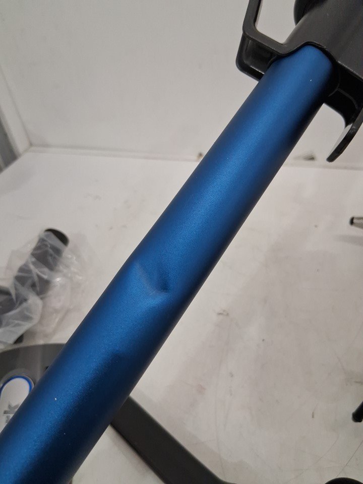 item has some minor marks/scratches and dust from previous use and the clear dust container is slightly damaged and the pole is slightly dented please refer to pictures tested for power and functionality