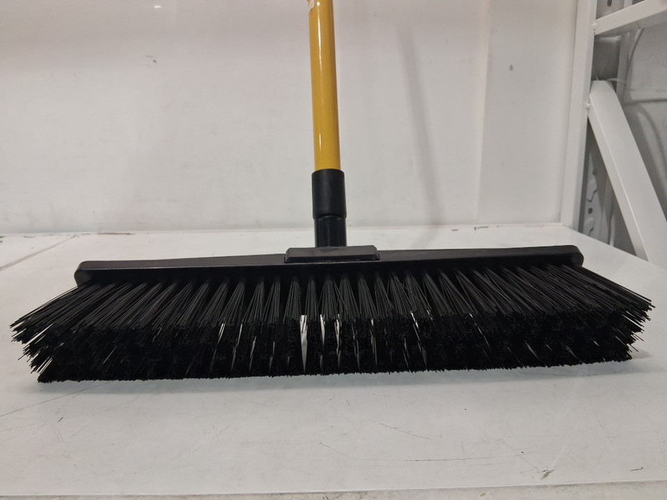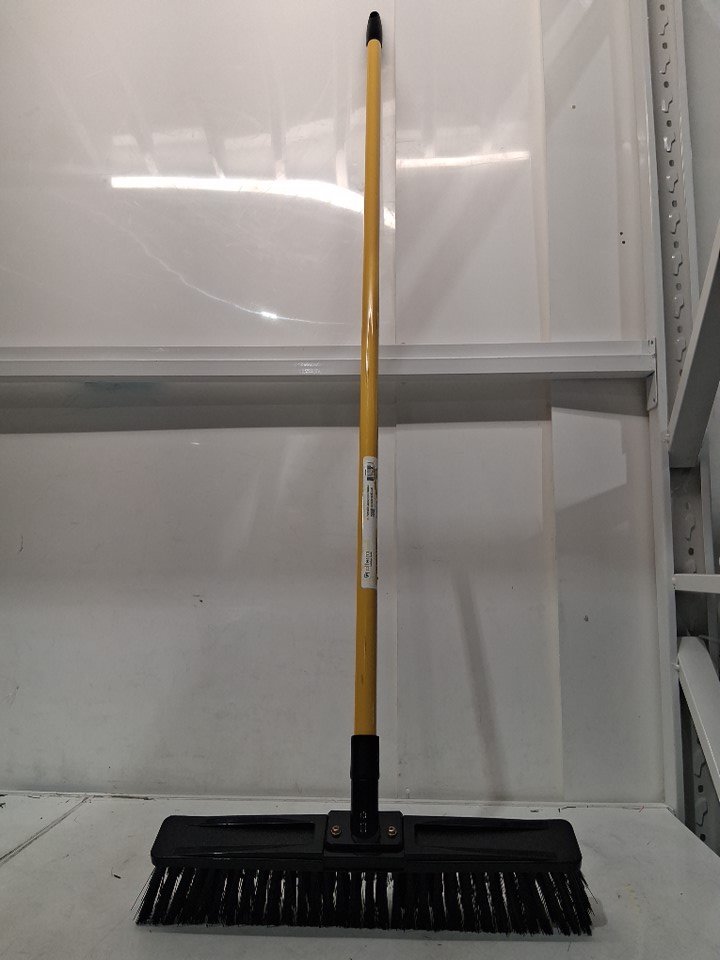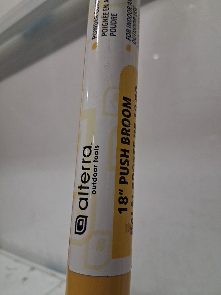Alterra Steel Long Handle Push Broom with Integrated Hanging Hole - 18" - black & yellow (model:AL24-LHPB18)