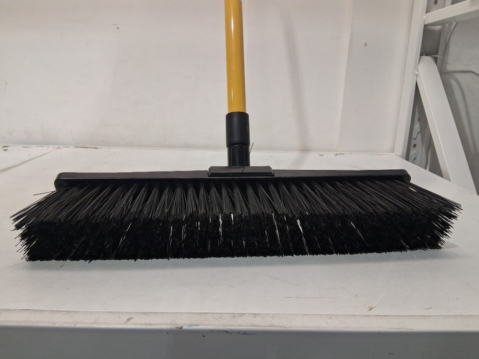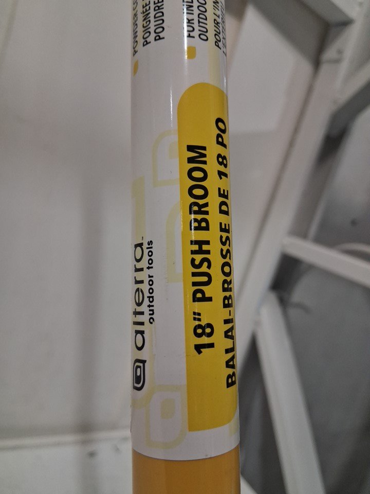 Alterra Steel Long Handle Push Broom with Integrated Hanging Hole - 18" - black & yellow (model:AL24-LHPB18)