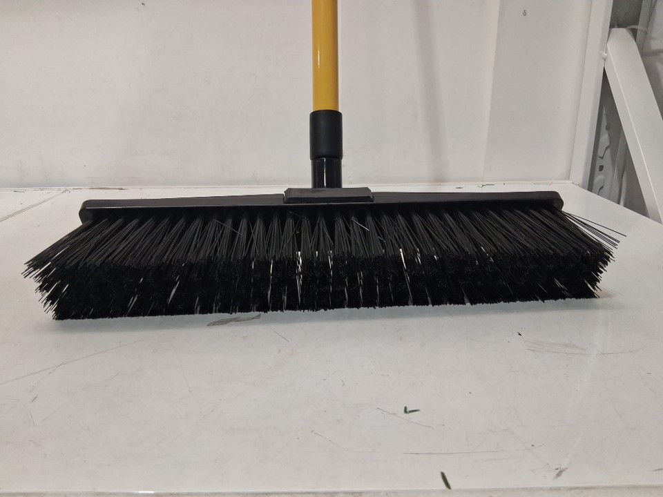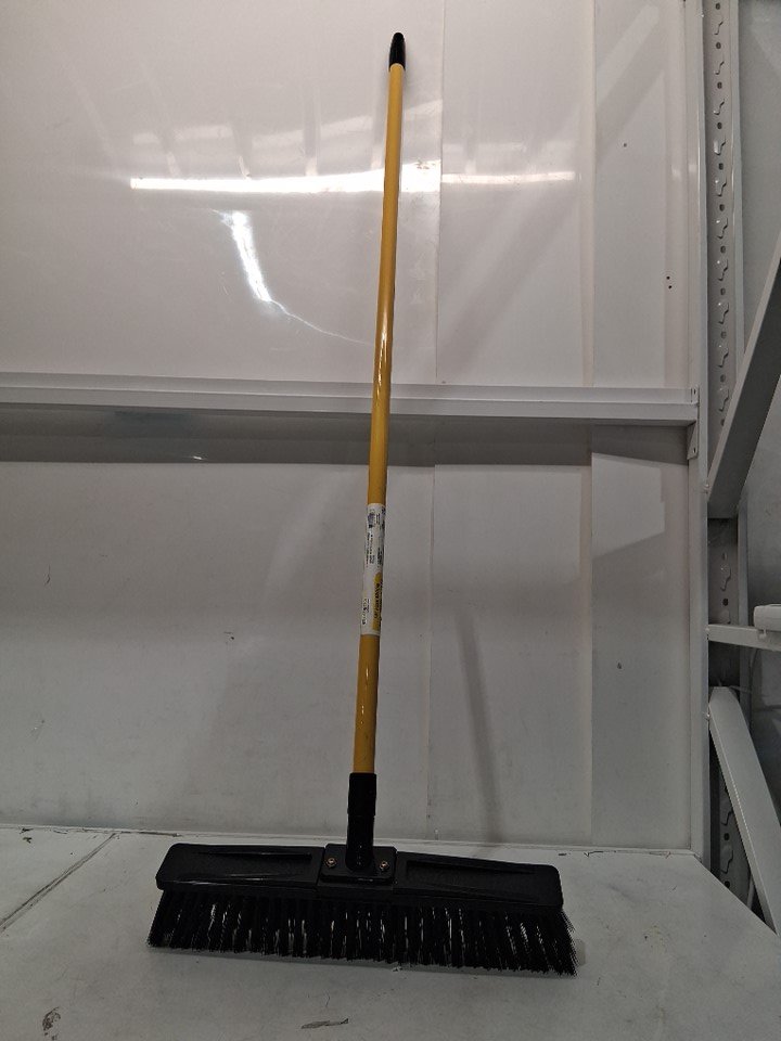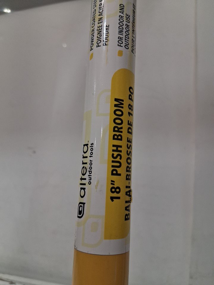 Alterra Steel Long Handle Push Broom with Integrated Hanging Hole - 18" - black & yellow (model:AL24-LHPB18)