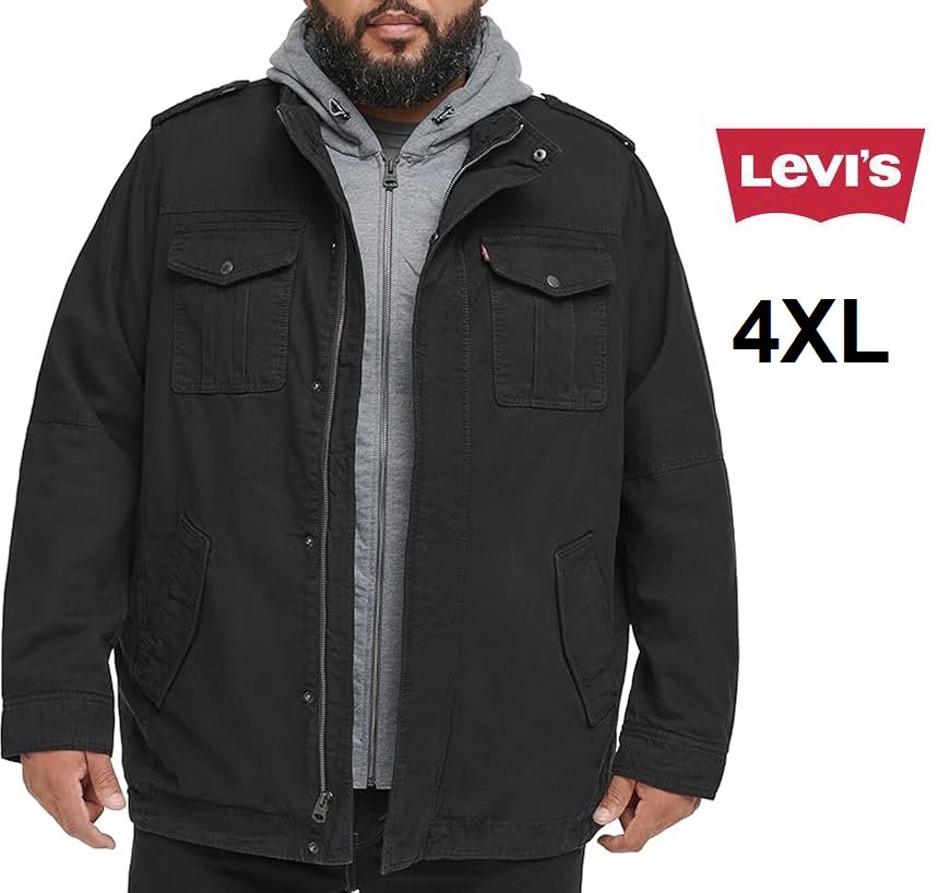 Men's Levi's Washed Cotton Hooded Military Style Jacket with Removeable Hood - 4XL - balck/Grey (Style: LM8XC364)