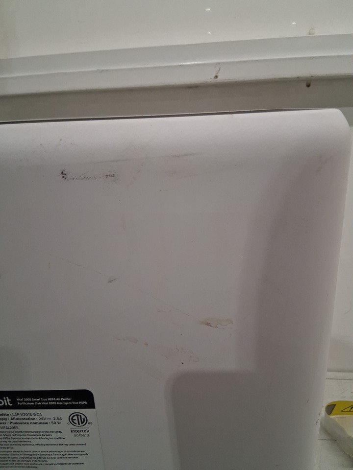 There is a decent amount of scuff marks on the air purifier but most of them should come off with a good wipe down. There is also dust in the filter from previous use. Tested for power.