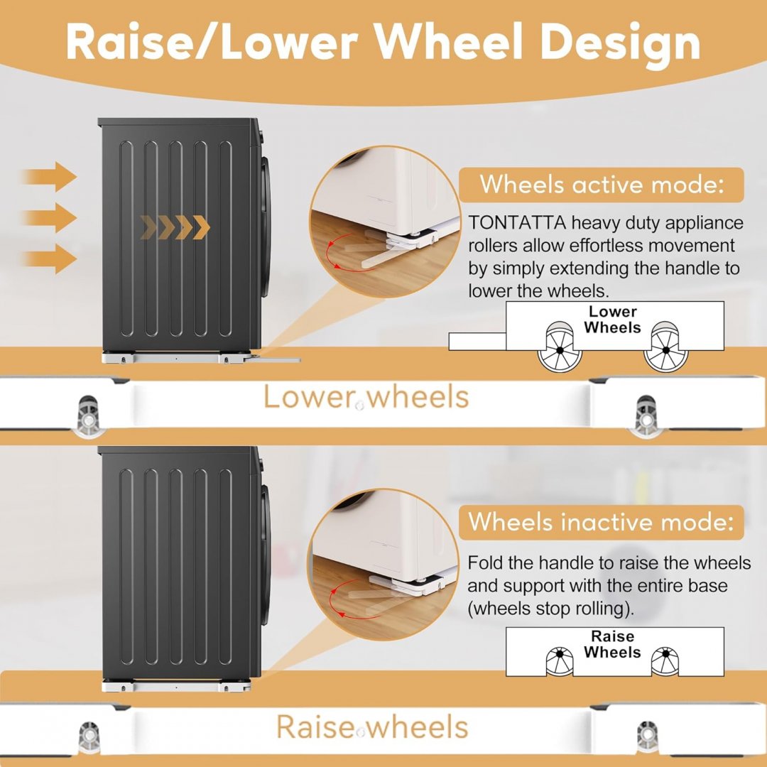 TONTATTA HEAVY DUTY APPLIANCE ROLLERS - 4.8" x 21.8" - WHITE