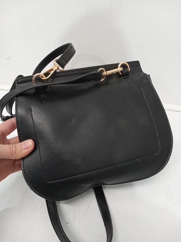 Women's Time and Tru Faux Leather Crossbody Bag - 9" x 7" - Black