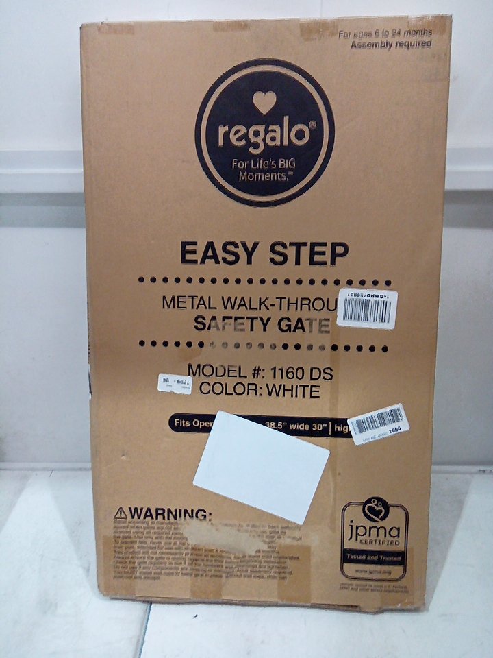REGALO EASY-STEP METAL WALK-THROUGH SAFETY GATE - 30" x 29'' to 38.5'' - WHITE - (MODEL: 1160DS)
