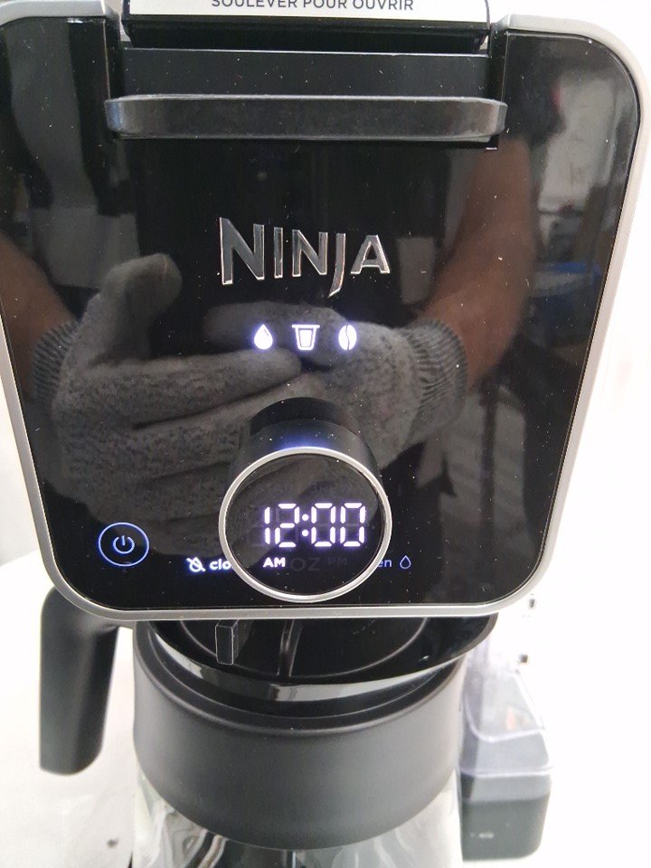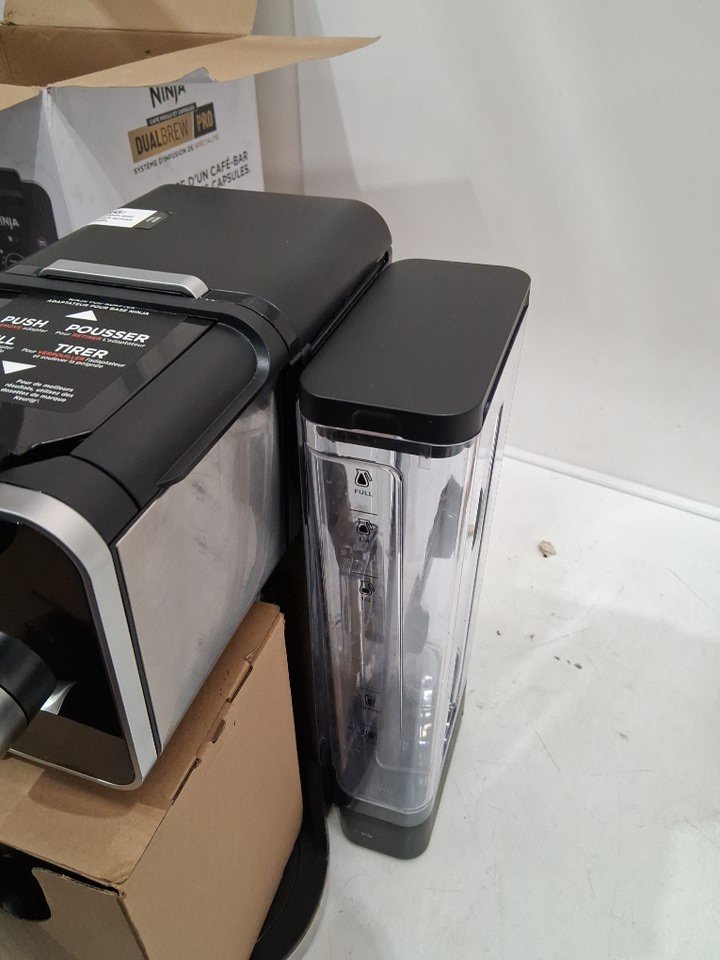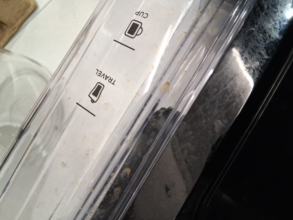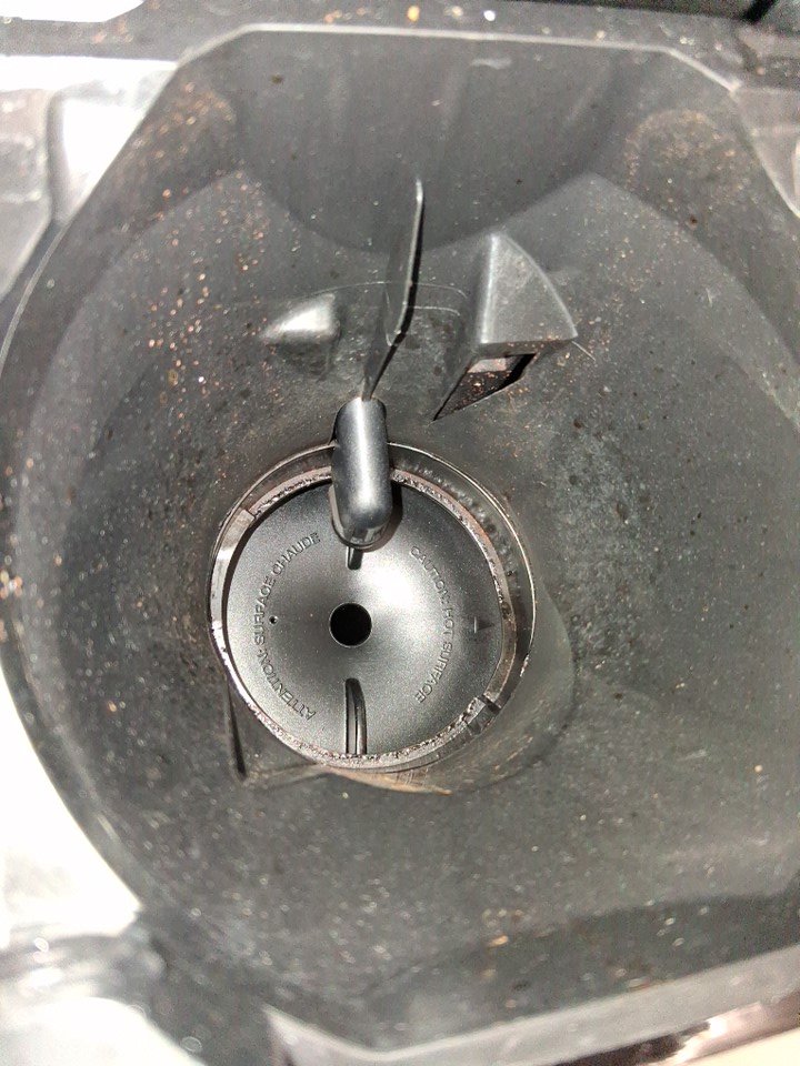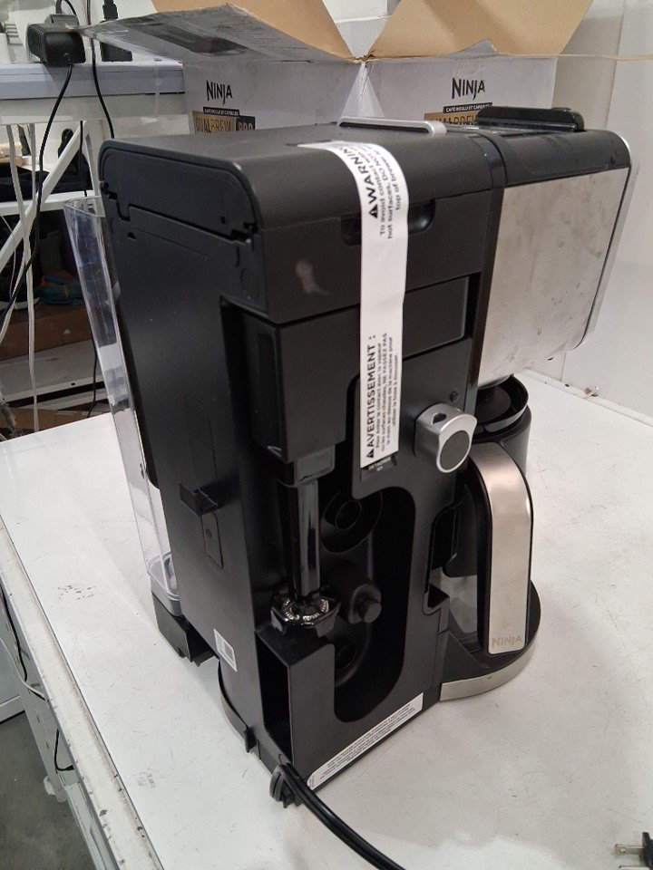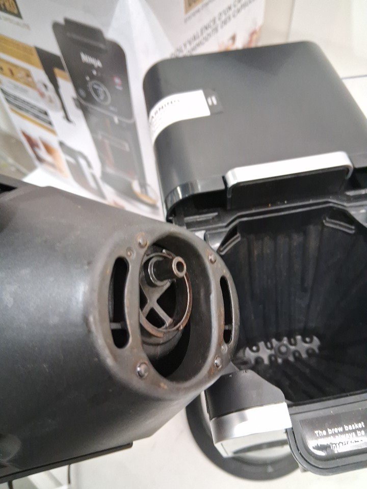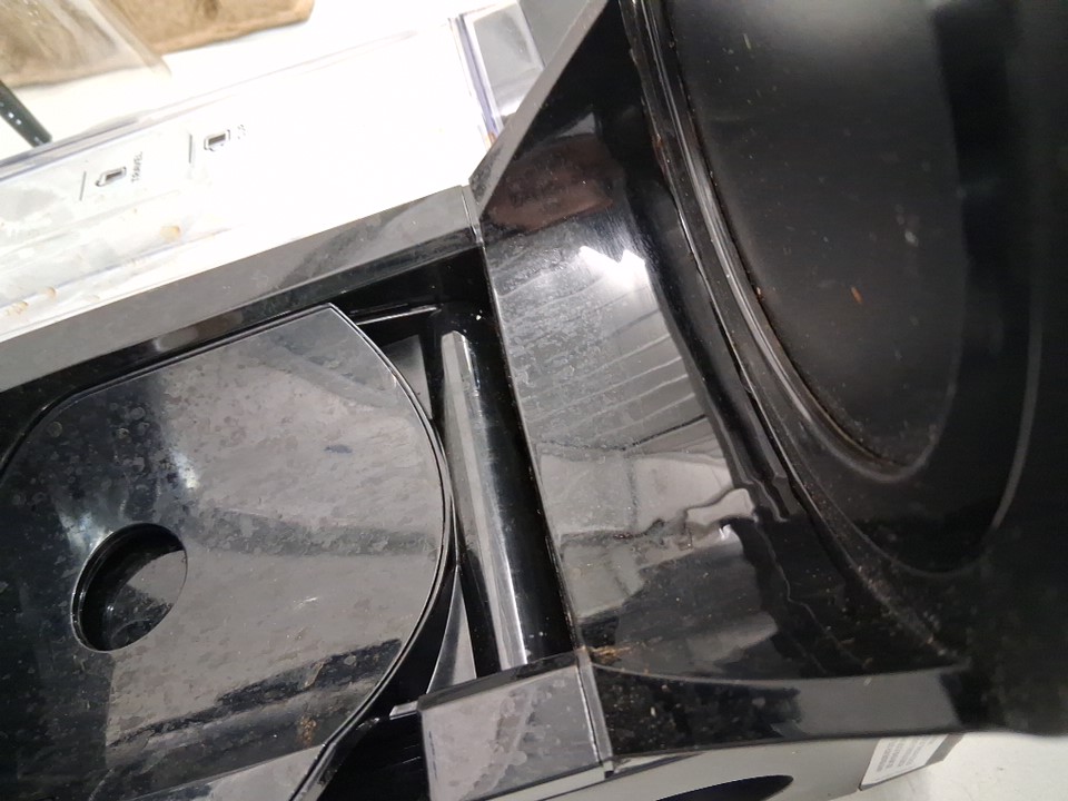 Stains, clear signs of use, could be cleaned, tested for power. coffee residue and debris.