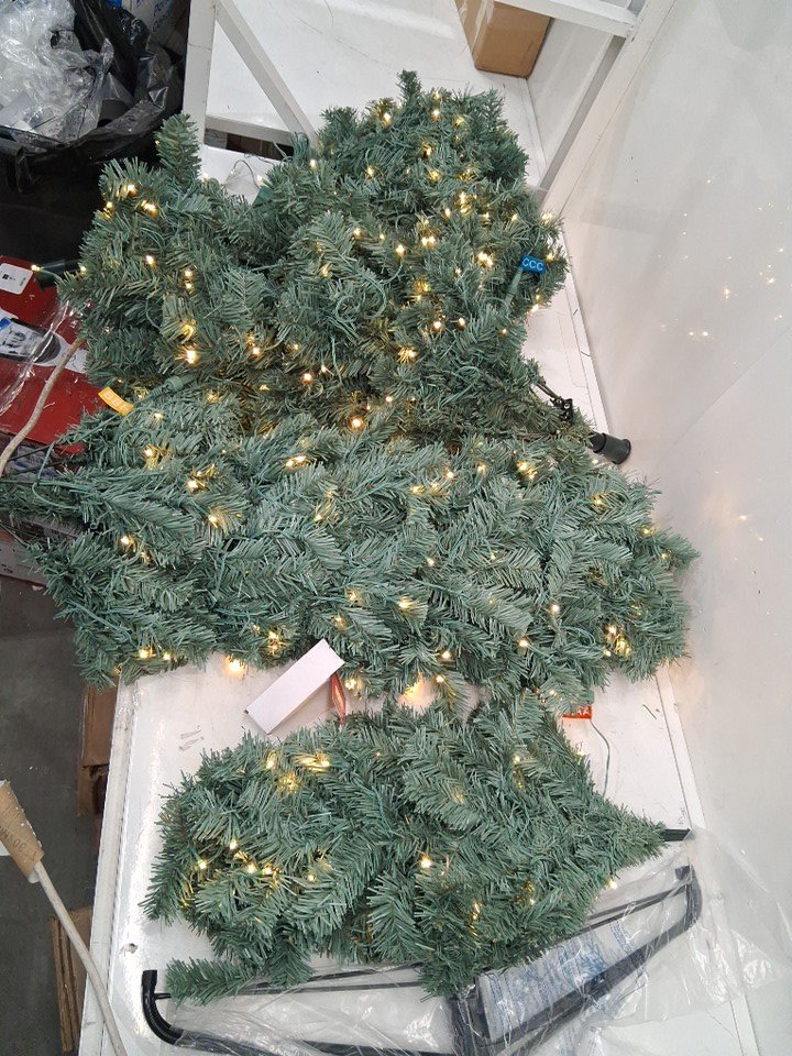 HAPPYGRILL Pre-lit Pencil Christmas Tree Hinged Artificial Xmas 1168 Blue Branch Tips 500 Warm White Multi-Color LED Lights - 9' FEET (model: CM24776US-XL)