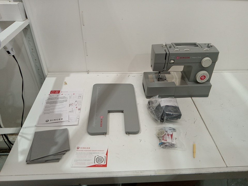 SINGER HEAVY DUTY SEWING Machine with Extension Table & Accessory Kit - Strong Motor with Enhanced Piercing Power, 110 Stitch Applications, Full Metal frame, 1-step Buttonhole & LED Light - GREY (MODEL: HD6380M)