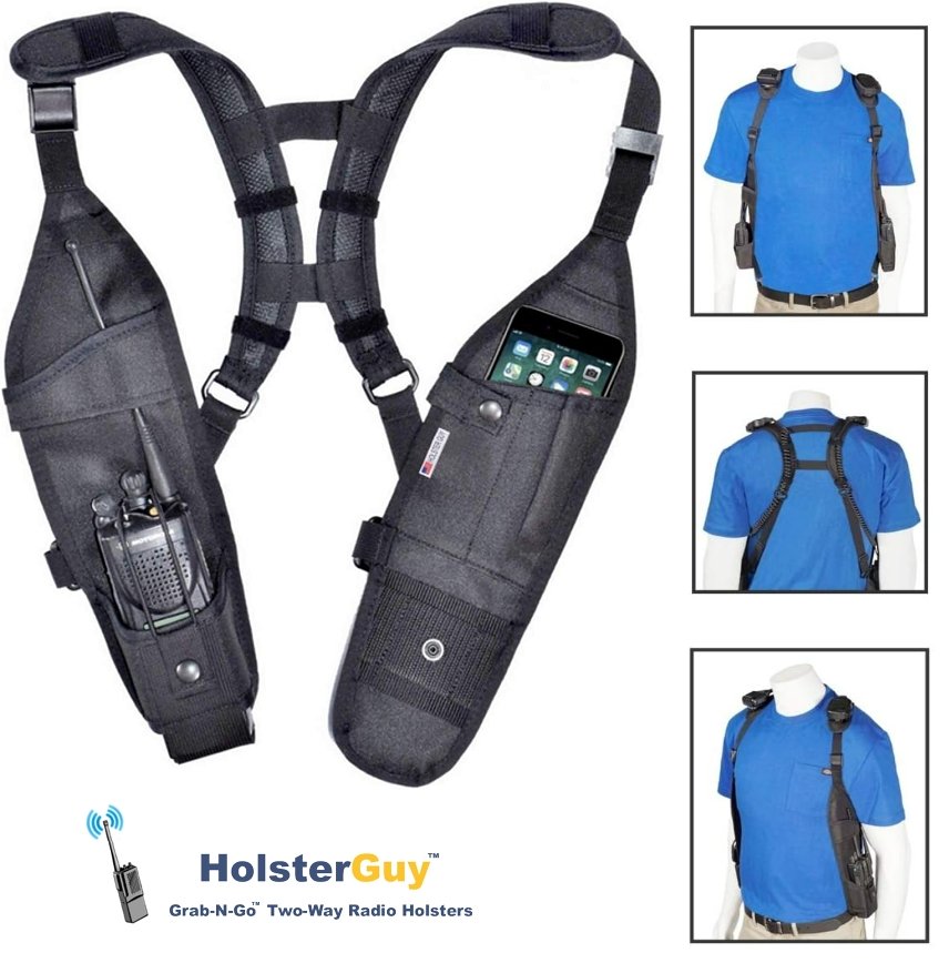 ADULT UNISEX HOLSTER GUY Universal Shoulder Holster Double Pouch for Portable Two Way radio (MODEL: USH-300D)