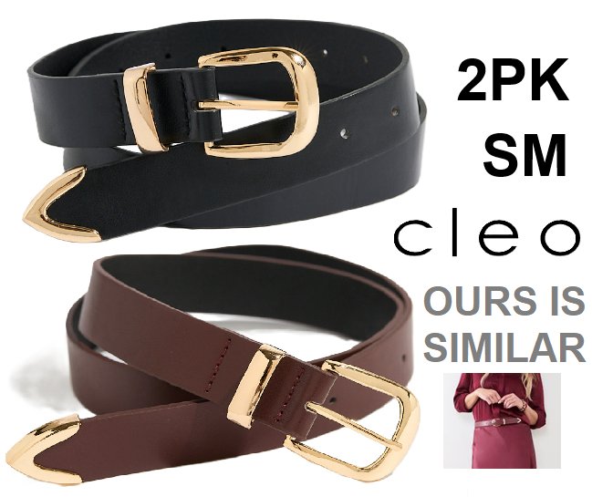2PK WOMEN'S Cleo Classic Pants BeltS - SMALL - BLACK AND SILVER /BROWN AND GOLD