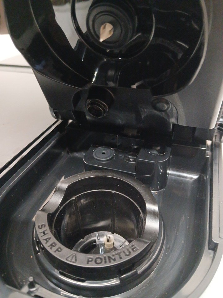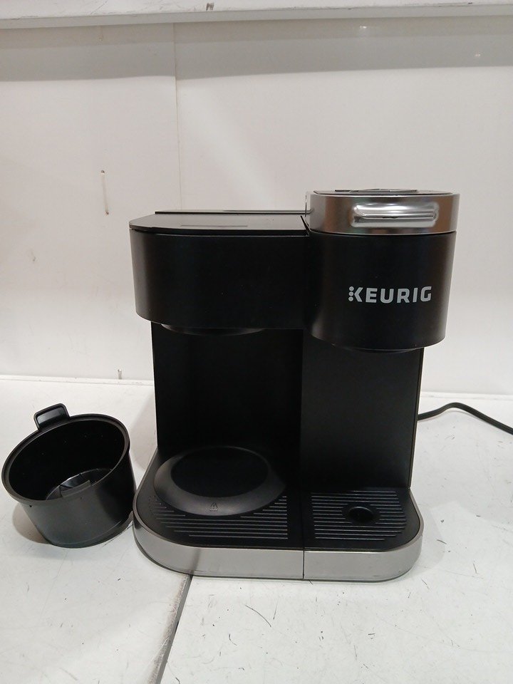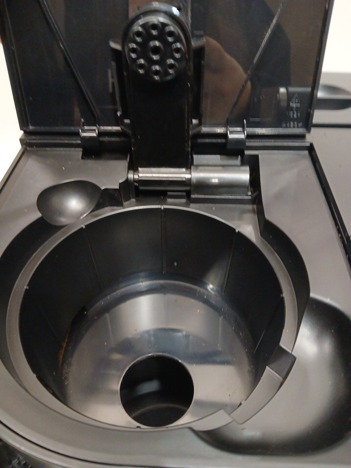 tested for power some dried water marks and coffee grinds there is a crack in the edge of the water tank missing coffee pot