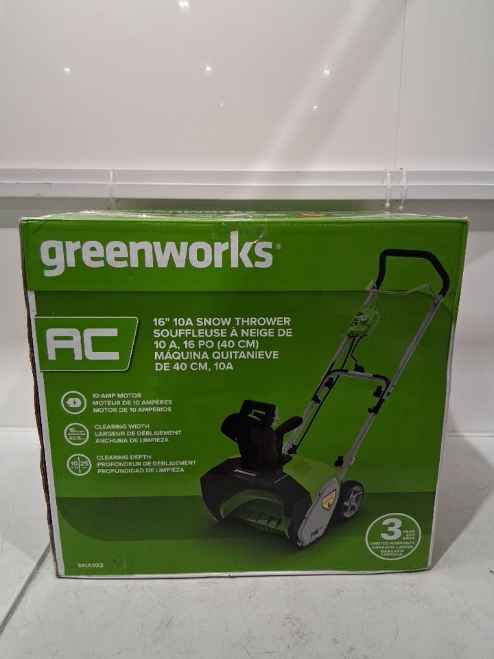 GREENWORKS CORDED SNOW THROWER - 10 AMP 16" - green/black - (MODEL: SNA103)
