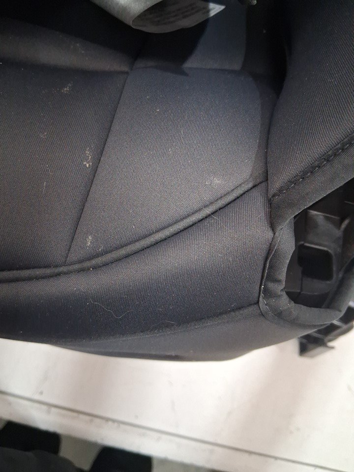 The item has a few small stains on the bottom right of the car seat; see photos for details.