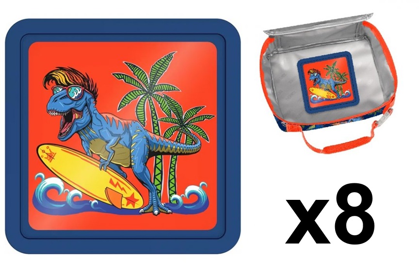 8 THERMOS Reusable Freezer Packs - 5" x 5" (EACH) - Daring Dinos/Blue/Red