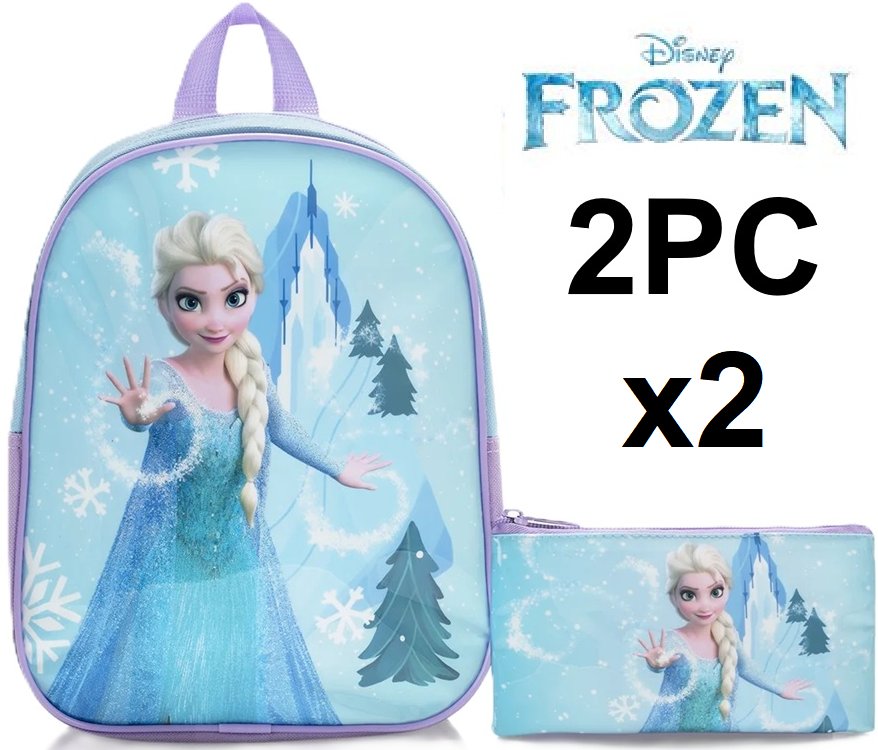 2 (2PC) Disney Kids Junior Frozen elsa Backpack & Pencil Case - Blue/Purple (Model: D-EST-JBP-FZ01-25AR)