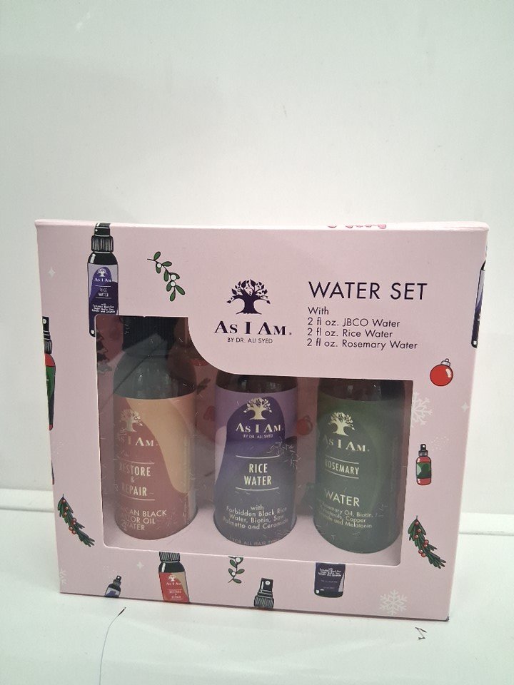 3PC As I Am Holiday Water Strengthening, Moisturizing Liquid SET - 2 OZ - RICE WATER , RESTORE & REPAIR , ROSEMARY WATER