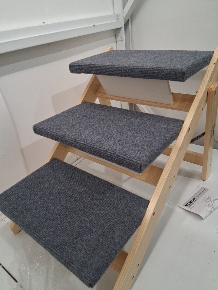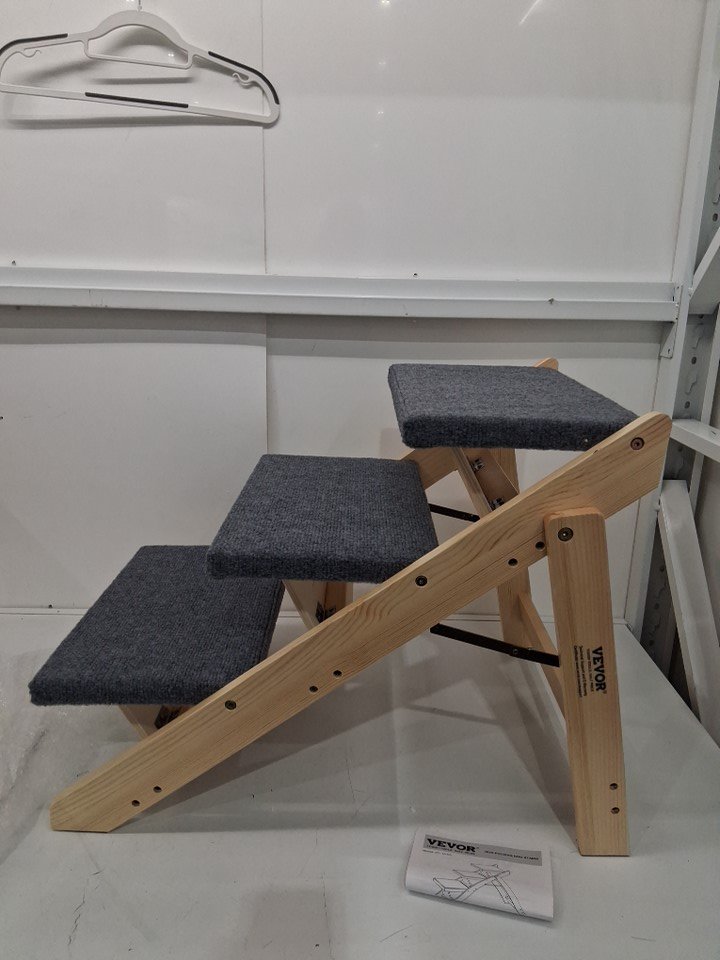 VEVOR Wood Pet Stairs/Pet Steps, 2-in-1 Foldable DOG STAIRS FOR BED with 3 Steps for Small Medium Large Pet, up to 150 lbs -19.6" x 18.5" x 19.6" - brown/grey (model:ZD-19-03)