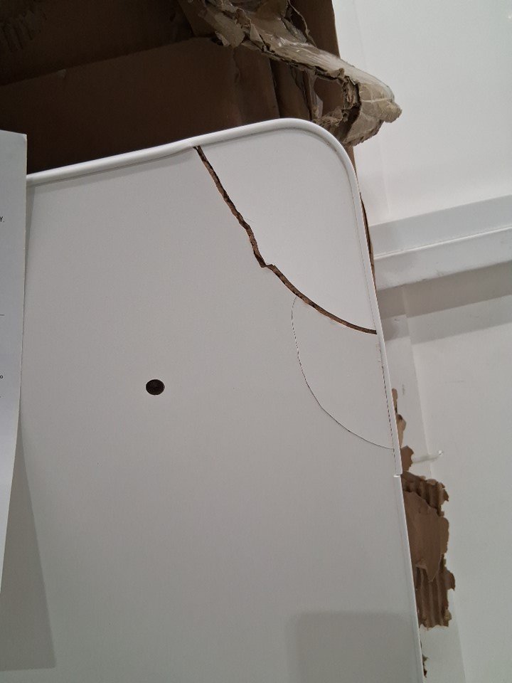 item has a big crack in one of the corners shown in pictures as well as some minor marks possibly due to shipping