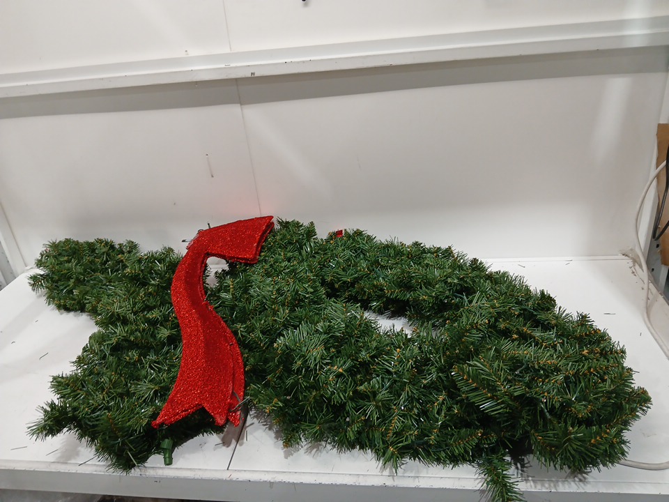 outdoor prelit christmas wreath with bow - 48" - green/red - white lights