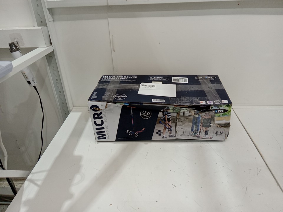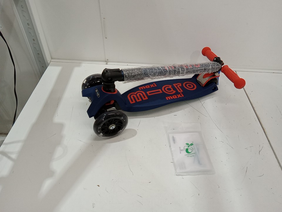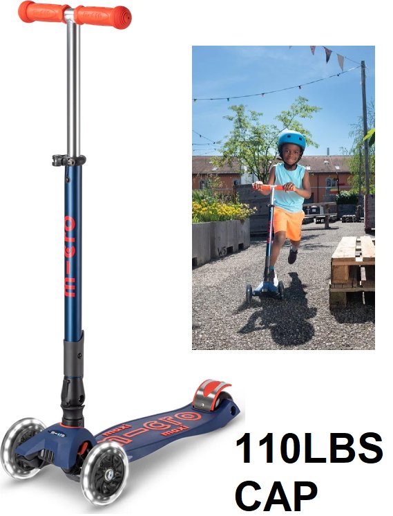 micro kickboard maxi deluxe foldable kick scooter with led lights - 110lbs capacity - ages 5+ - blue (model: mmd133)