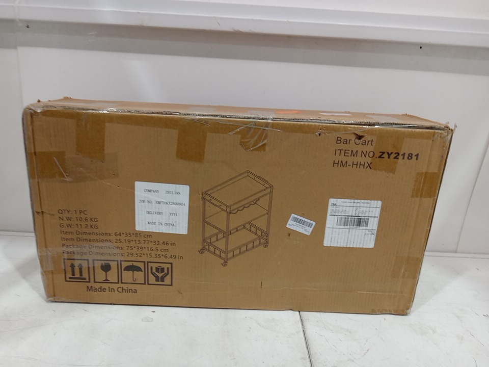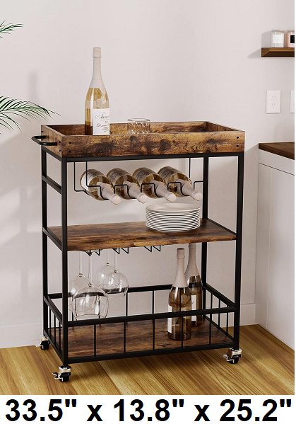 Azheruol 3-tier wooden metal Serving Bar Cart with Wheels - 33.5" x 13.8" x 25.2" - brown - (model:zy2181)