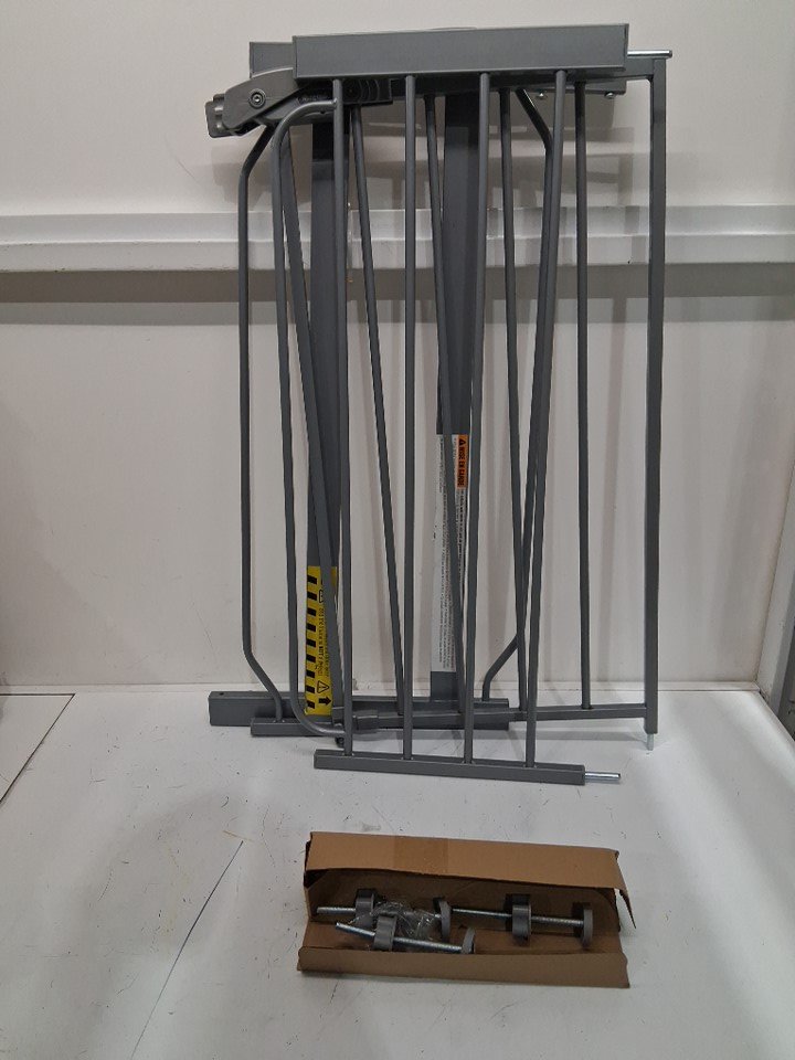 The hardware to pinch the gate is damaged and missing one- replacements will be necessary- Item has some light scuffs from prior use