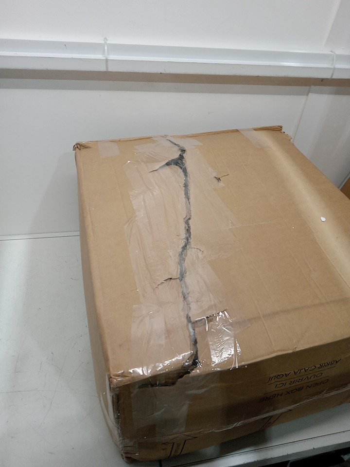 Opened to check contents as package was distressed/ripped. Wheels and main body of stroller are still wrapped/sealed with factory tape.