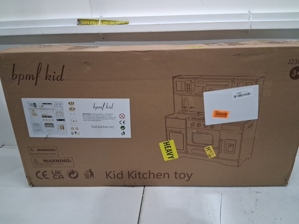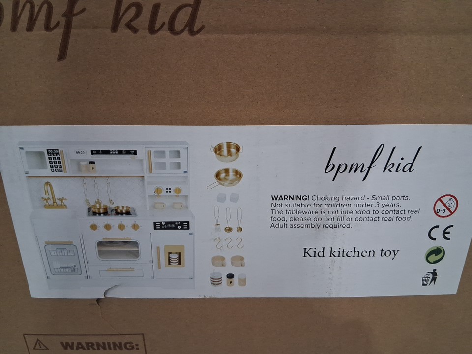 bpmfkid Interactive Wooden Play Kitchen Set, Realistic Features with Extended Storage and 15 pcs Kitchen Accessories FOR KIDS - WHITE/CREAM (MODEL:J23B03)