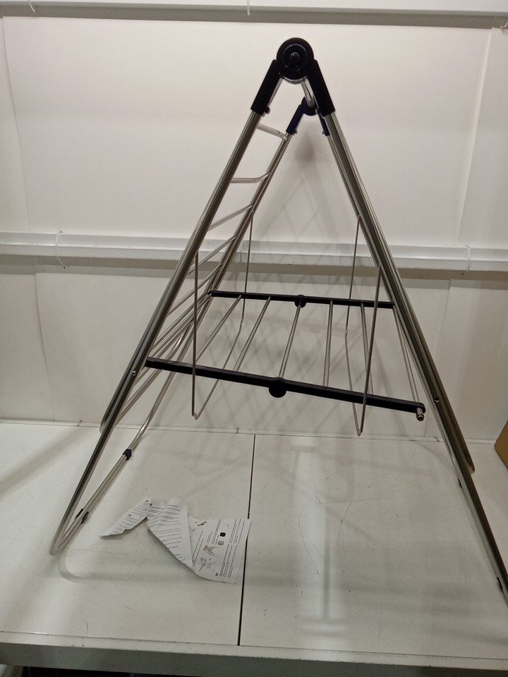 One of the drying rack poles is bent/warped, likely does not affect function. A small screw will be needed to reattach the middle rack.