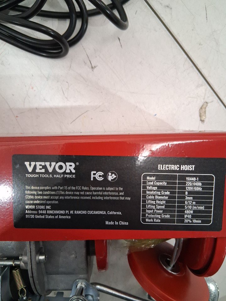 vevor electric overhead hoist lift with wired remote control - 440lbs max - 14ft wire winch/40ft single cable (model: yx440-1)