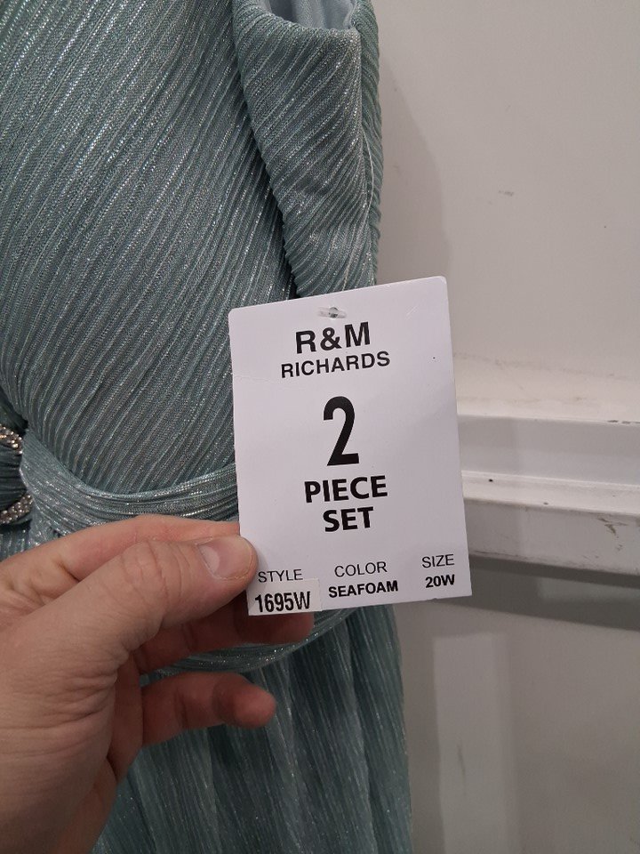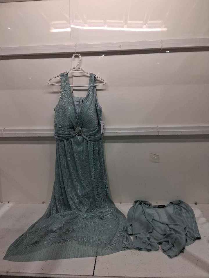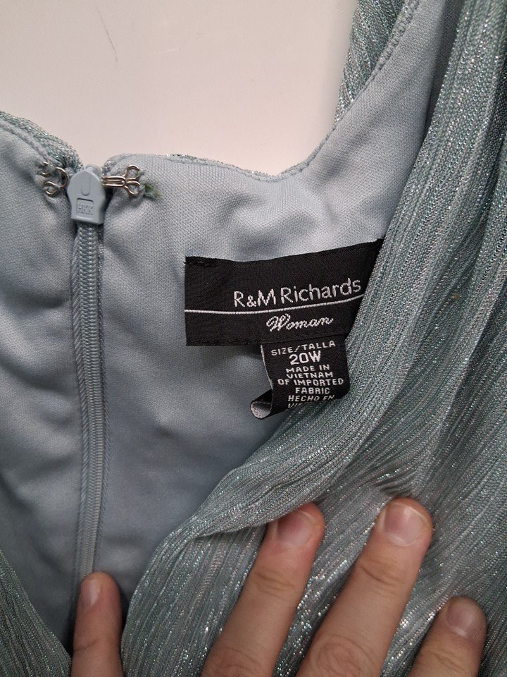women's r&M richards plus size Metallic V-Neck Dress with Removable Chiffon Caplet - 20W - Seafoam (style: 1695W)